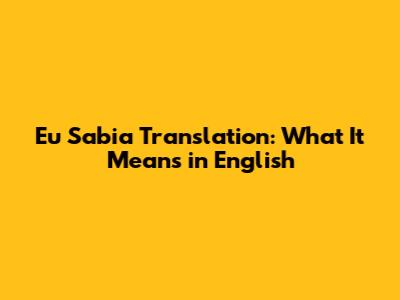 Eu Sabia Translation: What It Means In English