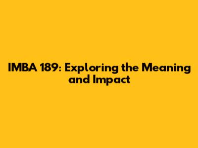 Decoding the Term: What Does IMBA 189 Really Mean?