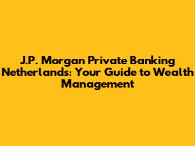 Hey there, financial enthusiasts! Ever wondered about J.P. Morgan Private Banking in the Netherlands? Well, you've come to the right place! We're diving deep into the world of wealth management, exploring what J.P. Morgan offers in the Netherlands, and why it might be the right fit for your financial journey. This article will be your go-to guide, breaking down everything you need to know in a simple, easy-to-understand way. So, grab your favorite beverage, sit back, and let's get started!