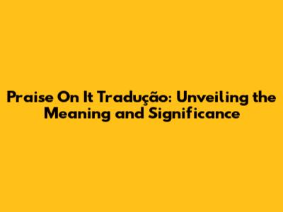 Praise On It Tradução: Unveiling The Meaning And Significance