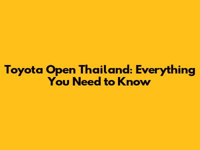 Toyota Open Thailand: Everything You Need To Know