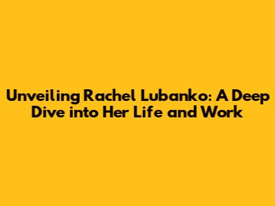 Unveiling Rachel Lubanko: A Deep Dive Into Her Life And Work
