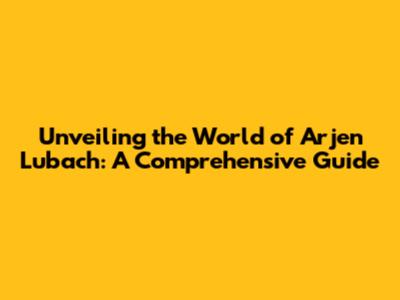 Unveiling The World Of Arjen Lubach: A Comprehensive Guide